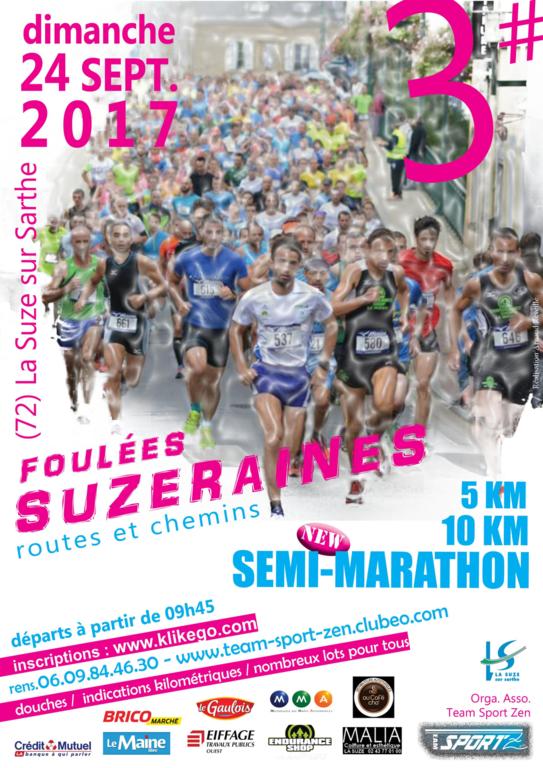 Les Foulées Suzeraines se dérouleront le Dimanche 24 Septembre 2017 , avec un 5km , un 10Km et un Semi-Marathon